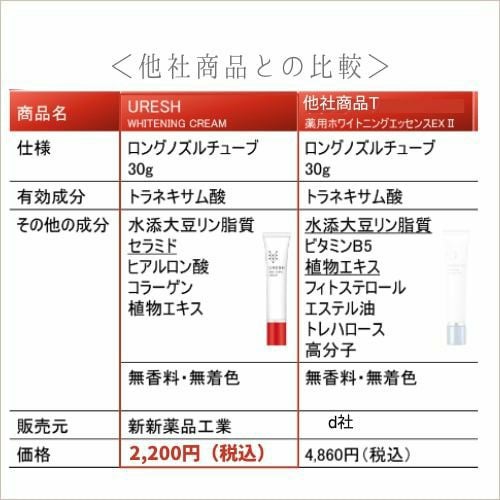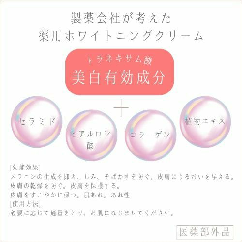 美白有効成分であるトラネキサム酸を配合したクリームです。