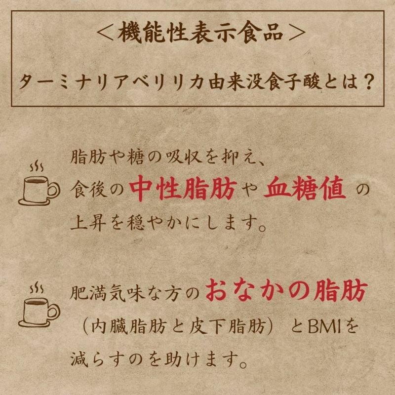 本品には、ターミナリアベリリカ由来没食子酸が含まれます。
