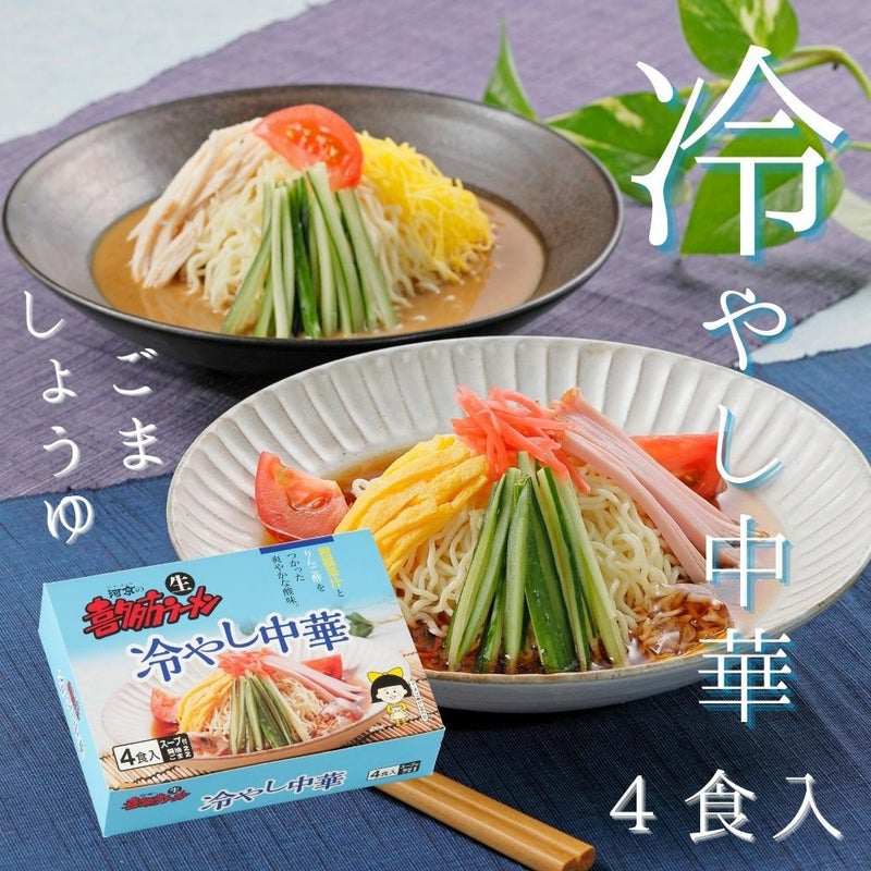熟成生麺(細麺)×4,冷やししょうゆスープ 50g×2,冷やしごまスープ 50g×2