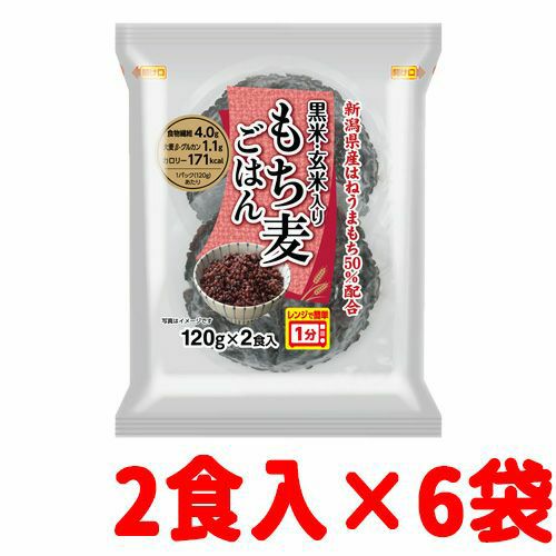 もち麦をたっぷり50%配合した、黒米・玄米入りのもち麦ごはんです。