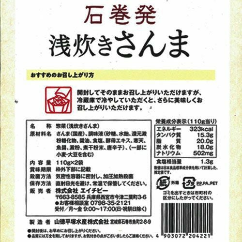 さんま(国産)、調味液(砂糖、水飴、還元澱粉糖化物、醤油、食塩、酵母エキス、寒天、魚醤、澱粉、煮干粉末、唐辛子)、(一部に小麦・大豆を含む)