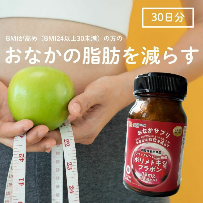 ブラックジンジャー由来ポリメトキシフラボンは、BMIが高め(BMI24以上30未満)の方腹部の脂肪(内臓脂肪及び皮下脂肪)を減らす機能が