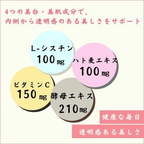 L-シスチン、ハト麦エキス、酵母エキス、ビタミンCの4つの美白・美肌成分で透明感ある美しさをサポートします。